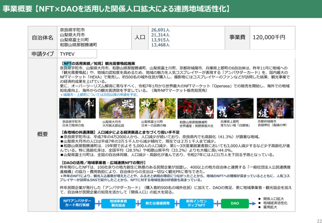 内閣府地方創生2.0モデル事業・NFT×DAOによる関係人口拡大施策(奈良県宇陀市、山梨県大月市、和歌山県那智勝浦町)