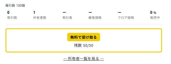 NFTを非公開販売で販売していただき、ご自身で購入して保有NFTとして頂く事が可能です。